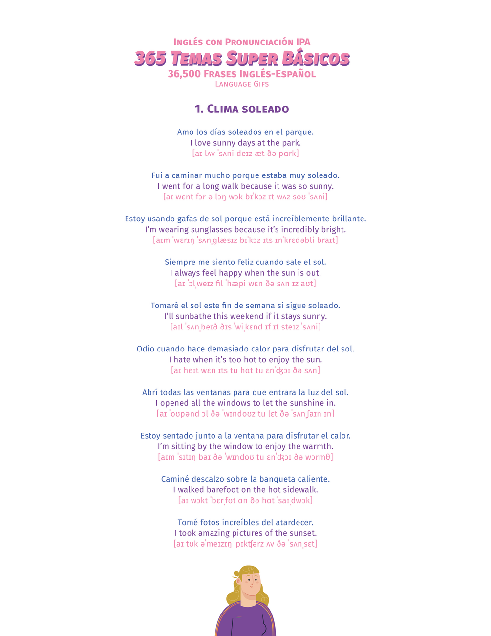 💡 Pronunciación clara 🗣️: Cada ejemplo viene acompañado de la pronunciación IPA para una práctica perfecta.